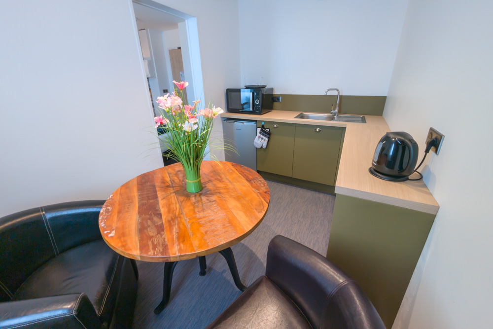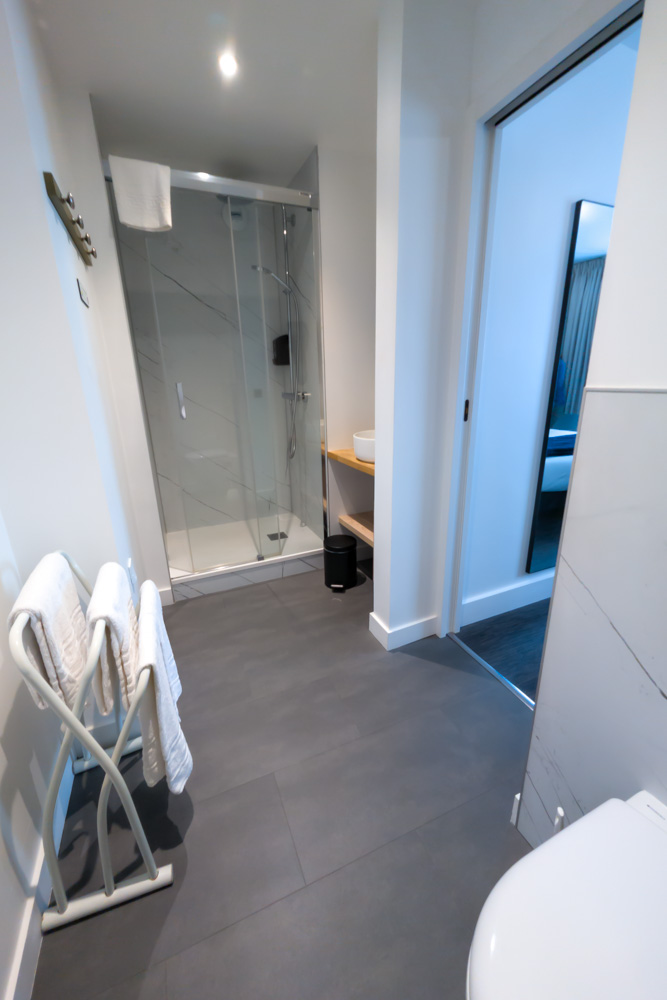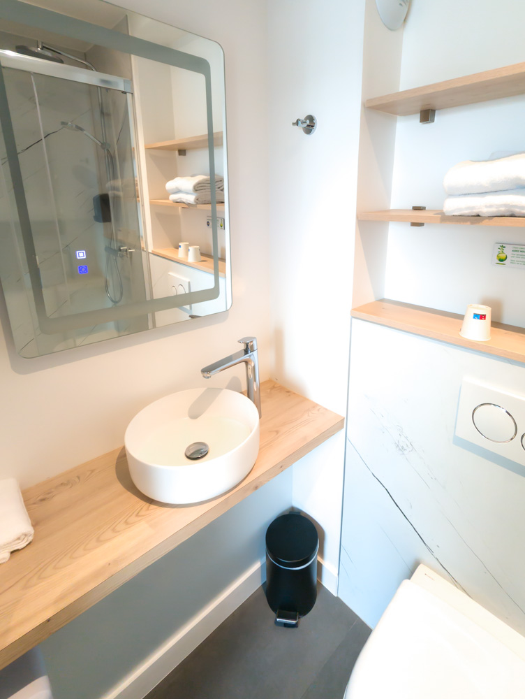 Ce studio de dispose d’un lit double garantissant des nuits reposantes, ainsi que d’une douche King-Size pour un moment de détente absolue. La kitchenette, moderne et fonctionnelle, vous permet de chauffer vos repas en toute autonomie. La pièce, lumineuse et bien agencée, offre un cadre chaleureux et cosy, tout en permettant de profiter de l’animation du port à travers la fenêtre. Parfait pour ceux qui recherchent une expérience intime avec une touche de confort supplémentaire.
